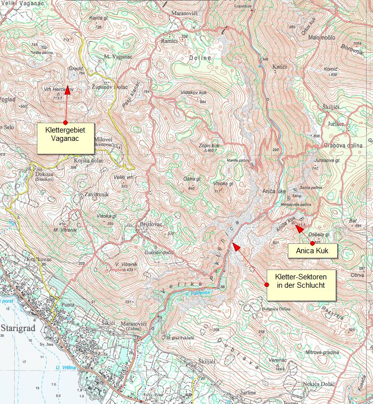 Übersichtskarte Klettergebiete Paklenica |