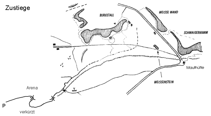 Übersicht Zustieg Burgstall und Weiße Wand |