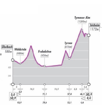 Nun von Waldstein über den Schenkenberg nach Frohnleiten. Dort verdrückte ich einen Strauß Bananen und füllte meine Flüssigkeistvorräte wieder auf. Da ich es unterlassen hatte, einen Blick auf die Karte zu werfen, fuhr ich nun am orogr. rechten Murufer Richtung Mixnitz, was letztendlich zu einem kleinen Verhauer führte. Doch schließlich erreichte ich den Murradweg R2. Am besten gleich von Frohnleiten selbigen fahren! Die Abzweigung der Drachentour auf den Heuberg ist praktisch nicht zu übersehen. Jedoch ist dieser Abschnitt, obwohl relativ kurz, doch recht anstrengend. Runter nach Thyrnau geht's wieder etwas leichter. Als nächstes steht einer der großen homogenen Anstiege auf dem Programm, rauf auf die Tyrnauer Alm. Gute 700 Höhenmeter am Stück. Hier am besten das Gehirn ausschalten. Irgendwann ist man dann oben. Während dieses Anstieges war bereits erstes Donnergrollen zu vernehmen und die Wolken verdunkelten sich zusehends. Prompt begann es bei der Abfahrt zur Teichalm zu regnen. Auf der Teichalm, es war kurz nach 14 Uhr, erreichte ich das Ende der zweiten Tagesetappe, über 100 km und ca. 3400 Höhenmeter lagen hinter mir.