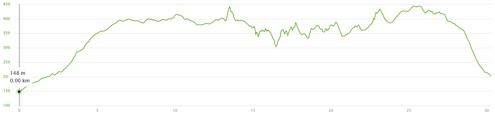 Anmerkung: | Die Strecke ist technisch wenig anspruchsvoll, kann auch mit Straßenlaufschuhen gelaufen werden, wenn es trocken ist. Kriterien sind zum einen die Orientierung, weil es unzählige Wege und Abzweigungen gibt, und zum anderen die Flüssigkeitsversorgung. Es gibt auf der gesamten Strecke weder eine Quelle noch eine Hütte oder dergl. |