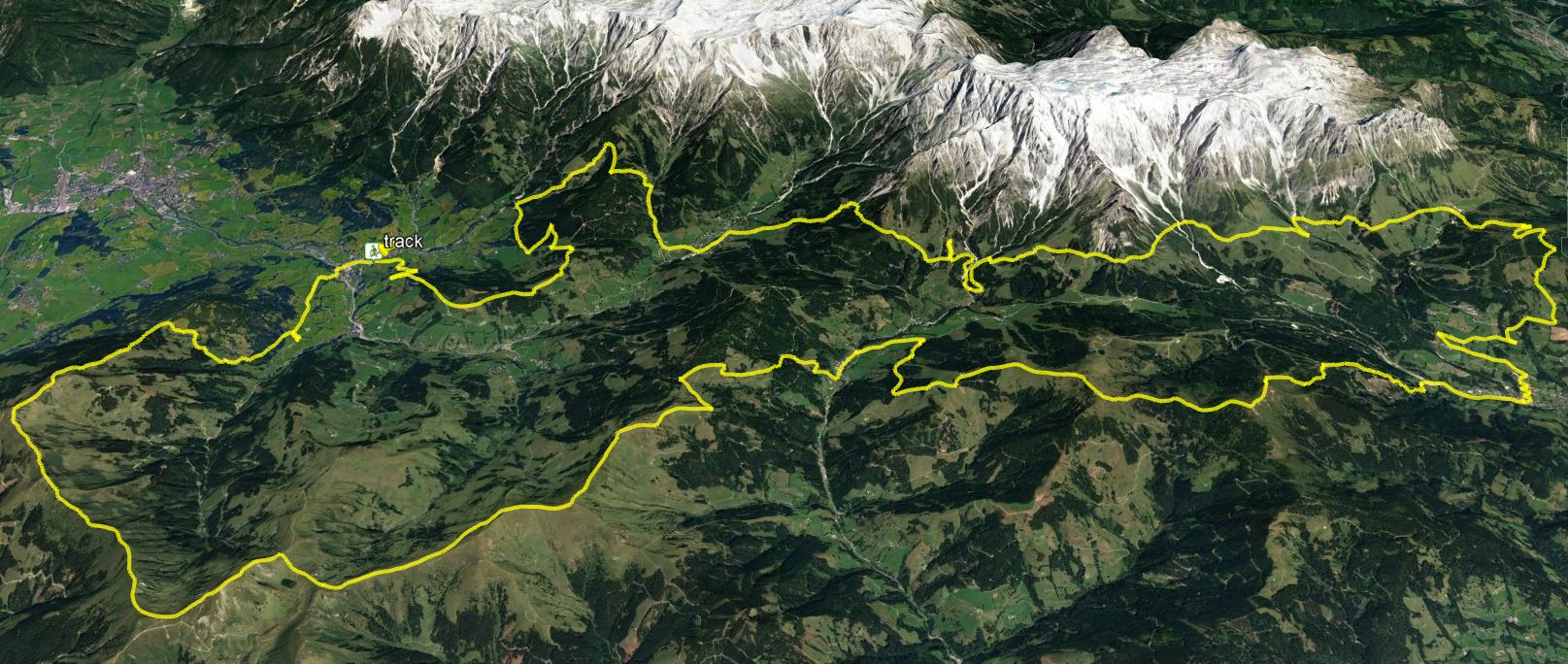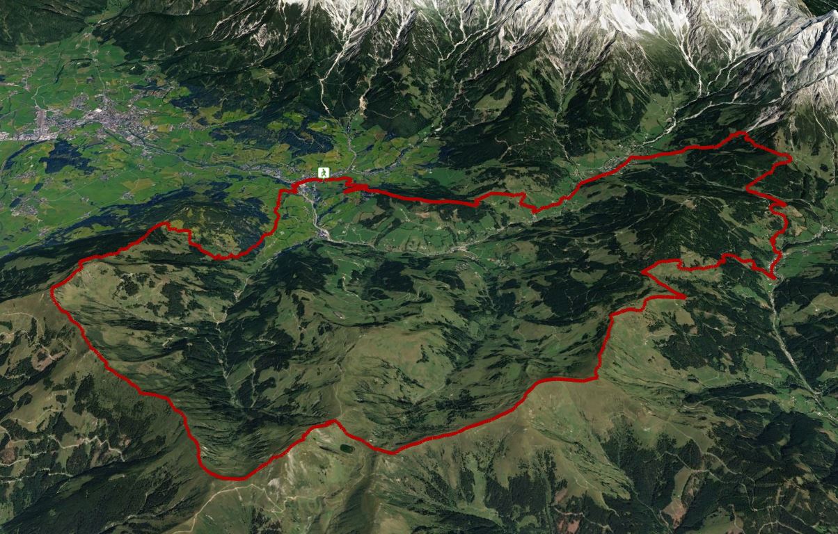 Auf den steilen Trails kann ich mit Zähne zusammenbeißen vorerst zwei Läufer überholen. Aber auf den Forststraßen werde ich wieder langsamer und eingeholt. Mit dem Läufer, Matthias komme ich ins Gespräch, und wir laufen/gehen gemeinsam weiter. Es ist ein sehr nettes Gespräch. So nett, dass wir uns vor lauter tratschen im Bereich Hagleiten nochmal verlaufen. Erst als wir einen Bauern fragen, wo die Läufer hier lang kommen, weist er uns den richtigen Weg. Wieder 10 Minuten verschenkt, ist aber eh schon egal. Mit Matthias vereinbare ich, dass wir vor dem Ziel etwas Abstand lassen, es war ihm wichtig, diesen Moment und auch das Zielfoto für sich zu haben.