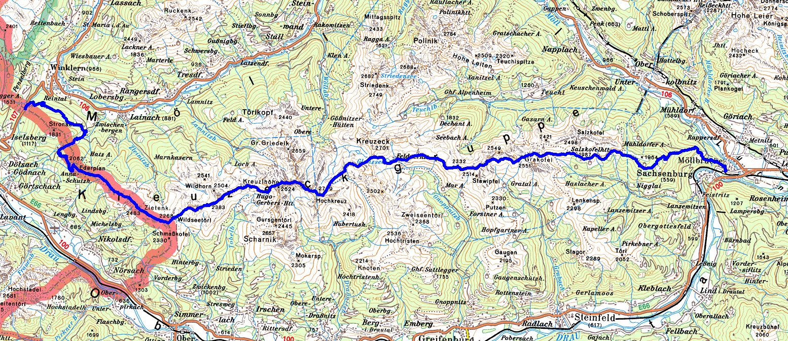 - Pfarrkirche Möllbrücke - Salzkofelhütte: 12 Kilometer, 1450 Hm+, 25 Hm-