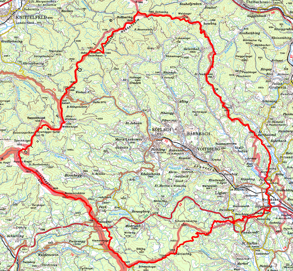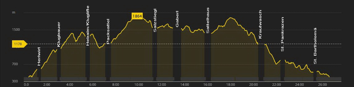 - Salzstiegel - Gaberl 9km Hm: +202/-98, Gaberl - Sattelhaus 12km Hm: +150/-303, Sattelhaus - Krautwasch 17km Hm: +554/-822