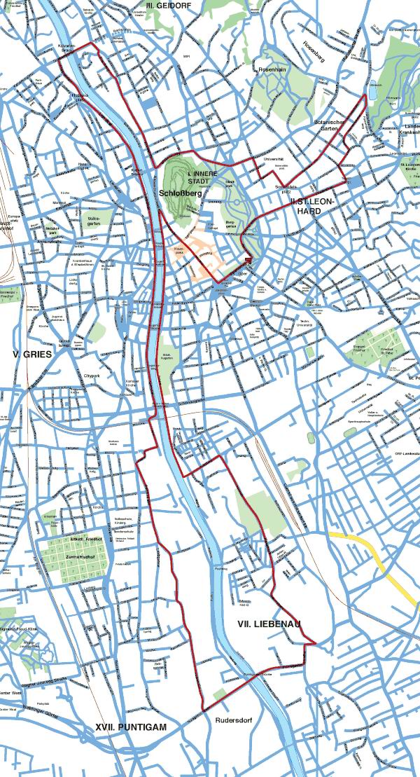 Weiter ging's wieder Richtung Hilmteich. Langsam merkte ich aber leider, dass es mir immer schwerer fiel, das Tempo zu halten. Und so büßte ich Meter um Meter auf den Schrittmacher ein und es wurde langsam wirklich zäh. Was diesmal aber weit weniger schlimm war als bei meinen ersten beiden Marathons war die Übersäuerung der Muskulatur in den Beinen. Nun begann ich mir kleinere Ziele zu stecken, erstmal bis zur Kalvarienbrücke, dann erstmal bis zum Kunsthaus usw. usw. Beim Kunsthaus wartete wieder Barbara und ich holte mir ein Motivationsbussi ab. Nun merkte ich auch, dass ich langsam ein ziemliches Hungerloch bekam, aber leider bin ich gerade bei der letzten Labestation vorbei gelaufen, und die nächste war wieder fünf Kilometer entfernt. Ich hatte ein Gefühl, wie ein Auto mit leerem Tank. Obendrein waren auf der Strecke Richtung Puntigam recht wenig Zuschauer, und so blieb es anfeuerungsmäßig auch etwas ruhiger.