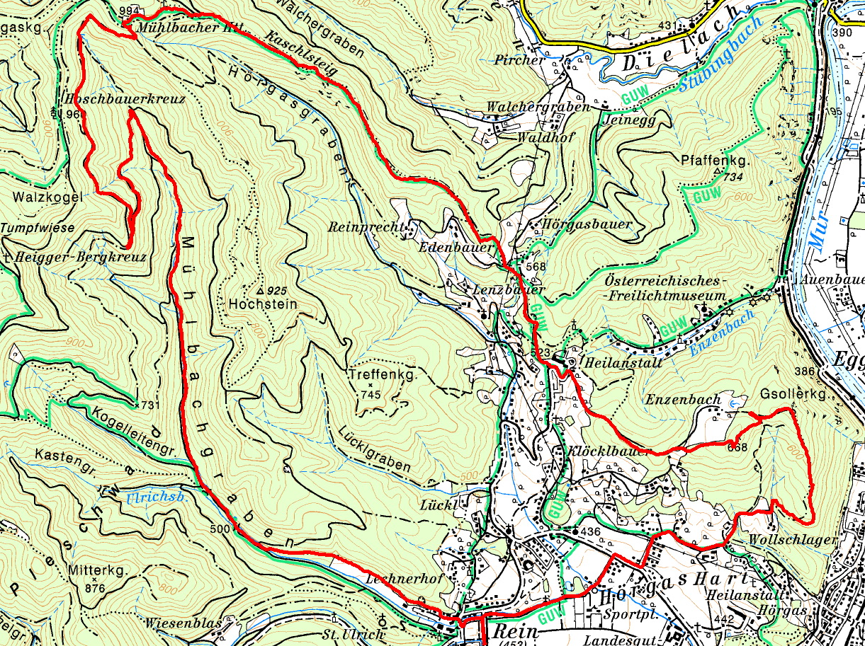 Anmerkung: | Für diese Runde würde ich unbedingt Geländelaufschuhe empfehlen. Auf der Mühlbachhütte gibt es im immer offenen Gastraum Getränke zu kaufen, bezahlt wird durch Einwurf in eine Kasse, also ein paar Euro mitnehmen. |