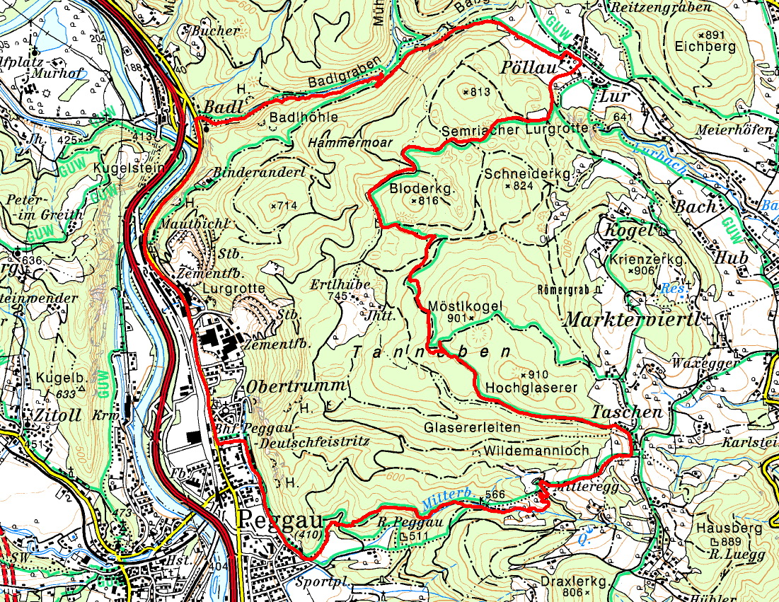 , PeterDie Runde beginnt in Peggau beim Bahnhof bzw. einem Parkplatz auf der gegenüberliegenden Straßenseite. Nun gegen den Uhrzeigersinn starten und zum Panoramawanderweg. Über schöne Trails, vorbei an der Ruine Peggau, teilweise ordentlich steil, nach Taschen. Ab dort mal etwas flacher weiter über Forstwege. Am Weg Richtung Pöllau gibt's wieder ein paar schöne Trails. Hier genau auf die Karte bzw. den Track achten, die eine oder andere Abzweigung ist etwas unscheinbar.